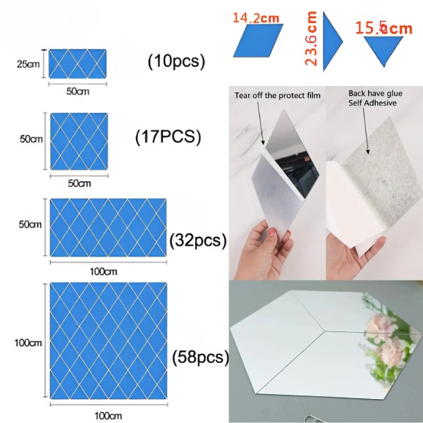 Transforme espaços monótonos em Ôreas vibrantes e convidativas com os autocolantes de espelho WALLGEM. Estes elegantes autocolantes refletem a luz, fazendo com que a sua divisão pareça mais brilhante, maior e mais acolhedora. São ideais para espaços mal iluminados, criando uma atmosfera animada que melhora o seu humor.