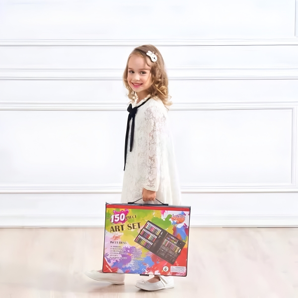 Isto é mais do que apenas um estojo de lápis. São 150 peças de pura criatividade. De esboços a pinturas, cola e tesoura — está tudo aqui.