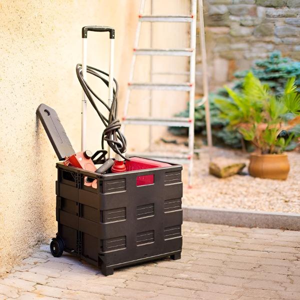 Este carrinho resolve o inconveniente de transportar objetos pesados.