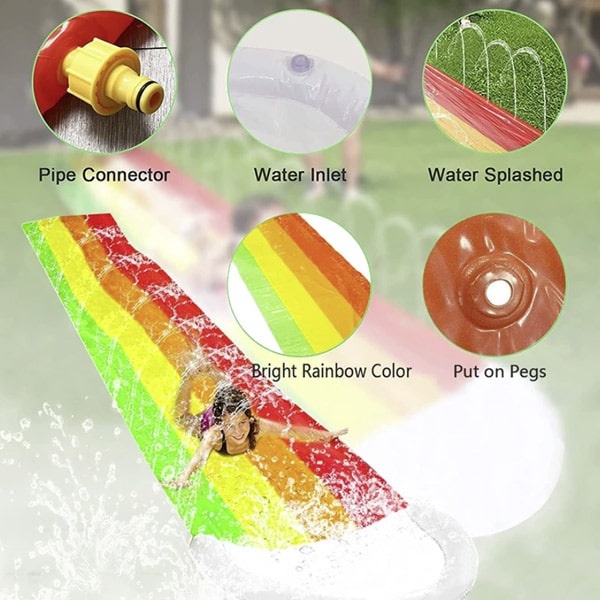 O escorrega aquático com sistema de aspersão é um excelente produto de entretenimento ao ar livre.