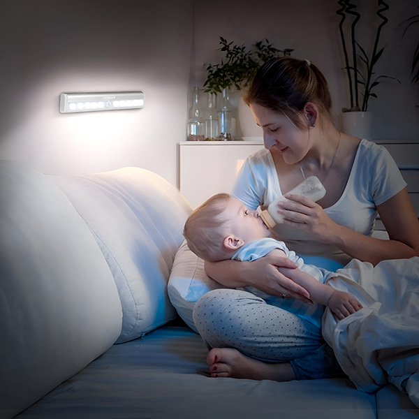 Nunca mais tropece no escuro! Instale esta luz perto do pé da sua cama, para que, quando acordar à noite, a luz se acender automaticamente, guiando-o em segurança para a casa de banho ou para a porta.