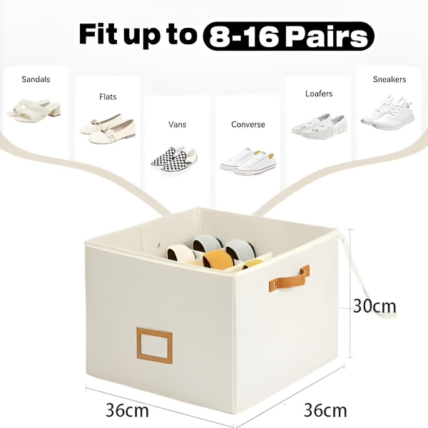 O organizador de calçado SHOVERA foi concebido para acomodar entre 8 e 16 pares de sapatos, incluindo sandálias, chinelos e sapatilhas, num formato compacto de 36x36x30 cm. O seu design dobrável permite uma arrumação fácil quando não está a ser utilizado, sendo ideal para casas, dormitórios e calçado sazonal.