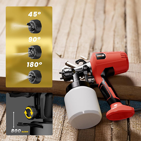 Gotejamentos e escorridos são a frustração número um com a pintura por pulverização. O bocal anti-gotejamento da PAINTJET mantém o fluxo estável quer se mova de forma rápida ou lenta, para que não haja escorridos feios na parede. O motor de 400 W a 32.000 rpm mantém uma pressão constante de um depósito cheio até à última gota.