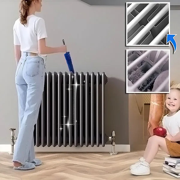 Não é necessário remover as grelhas do radiador. O DUSTOFF foi feito à medida para a limpeza de radiadores. A sua carga eletrostática atrai o pó e a sujidade, tornando-o ideal para radiadores do tipo painel, coluna, lóbulos, escada e toalheiros.